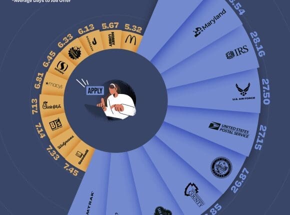 It can be an agonizing and frustrating experience. And, as this latest study from career.io shows, how long you have to wait depends on the company you want to work for. Using data collected and analyzed from Indeed, it ranks how long it takes many of the top US companies, tech giants, and restaurant chains to offer a job to interview candidates.